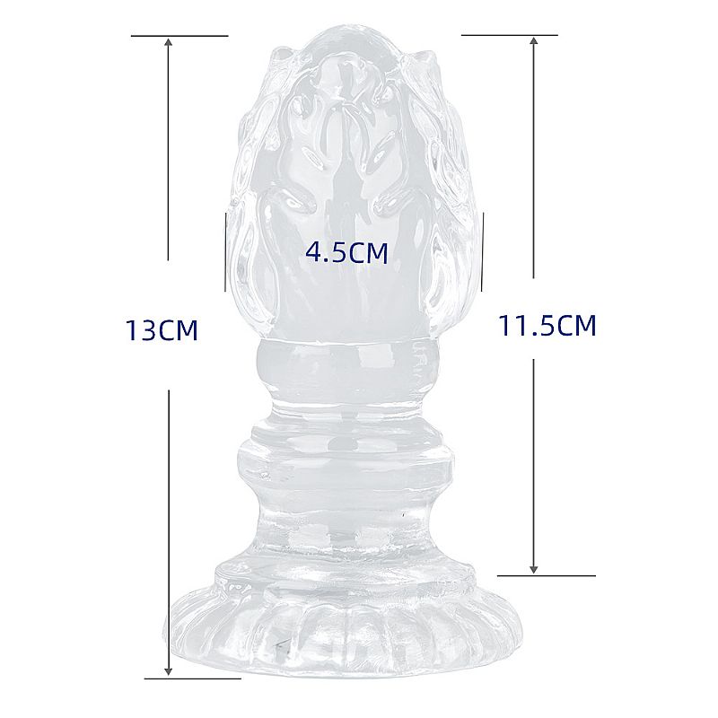 Plug anal feito de um material macio com textura e consistente com base que facilita o manuseio.